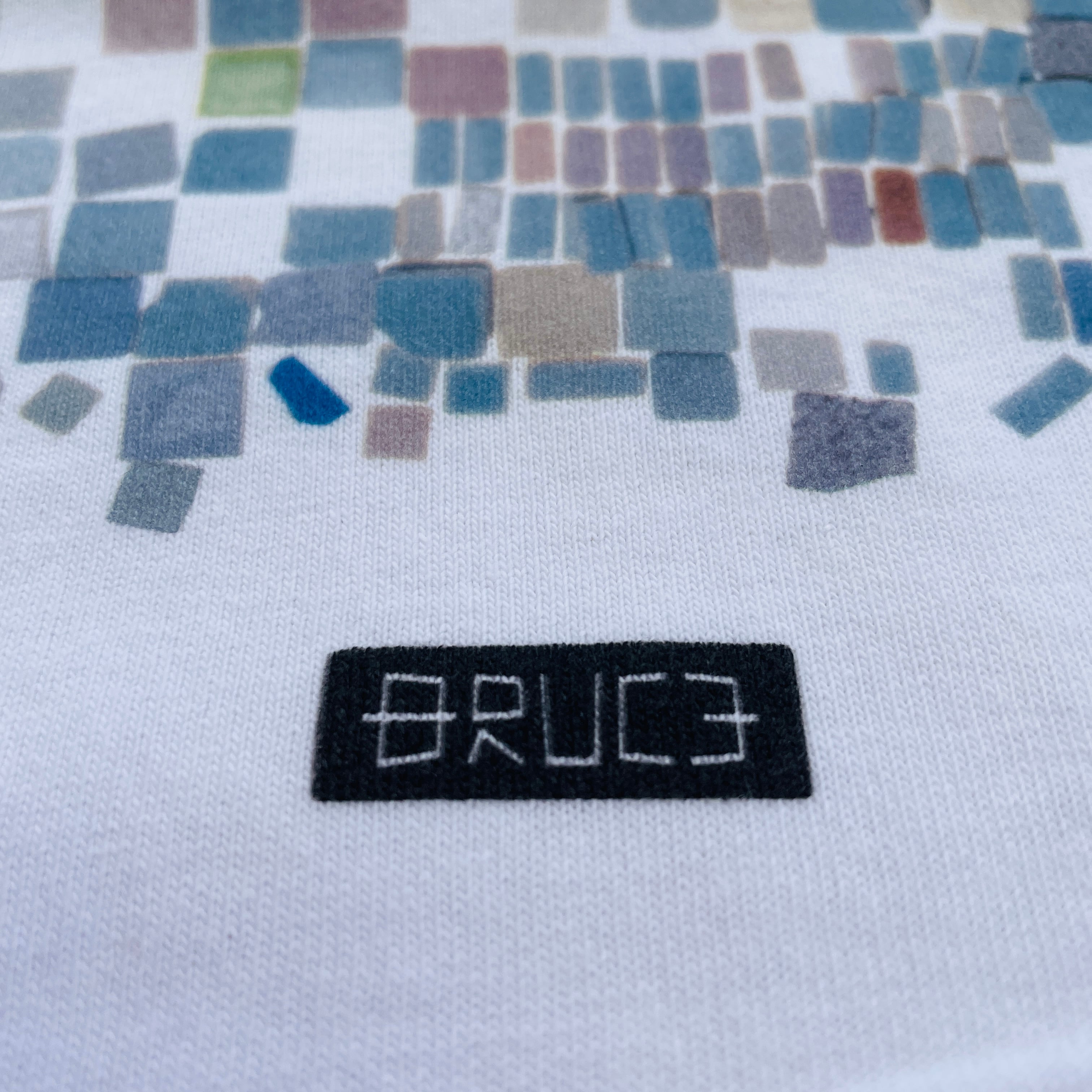 写真家Bruce Osbornが葉山の自宅近くの海辺で収集した漂流物を、素敵な感性でレイアウトして撮影した写真作品をT-SHに。逗子surfersの建物に使われていた古木で作られたウッドキャンバスにプリントした作品も展開。
